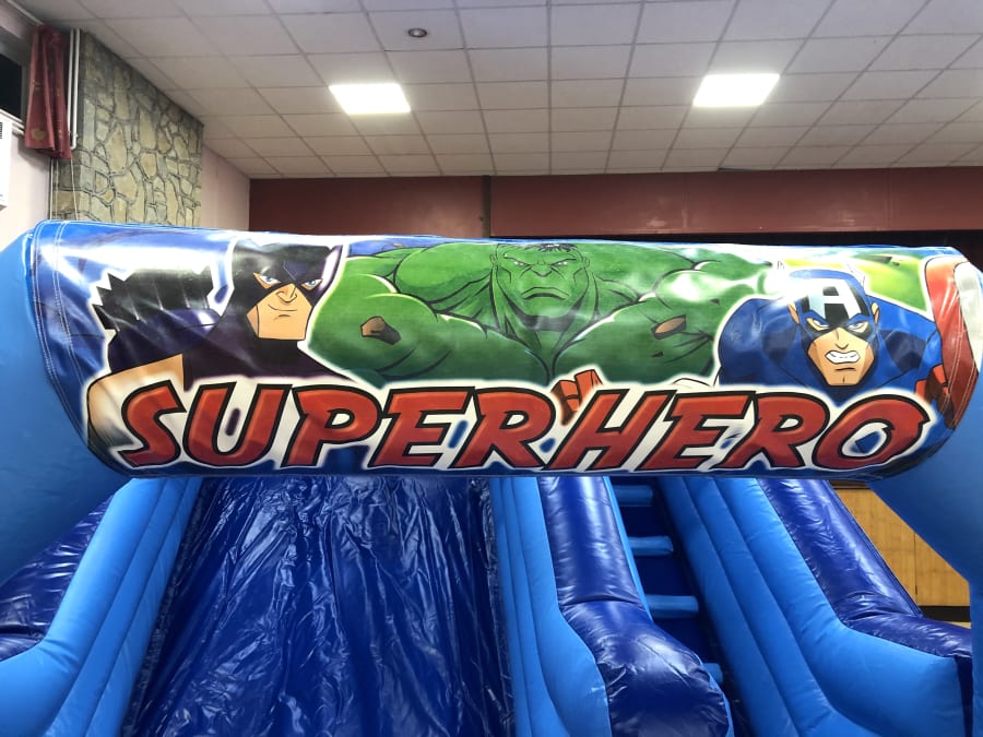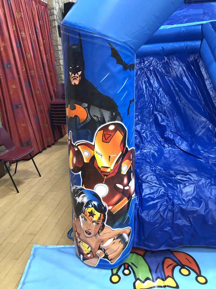 Calling all SUPER HEROES! Delight your kids with our fantastic 5ft Platform Slide! Ideal for indoor and out door parties! This Slides compact size with a low height ( 9'3") makes it perfect for indoor hall use! Perfect on its own or if you have the space why not add a castle to create a fantastic party package!! Suitable for children up to 1.3 metres in height. The 'Super Hero' theme is bound to be a smash..