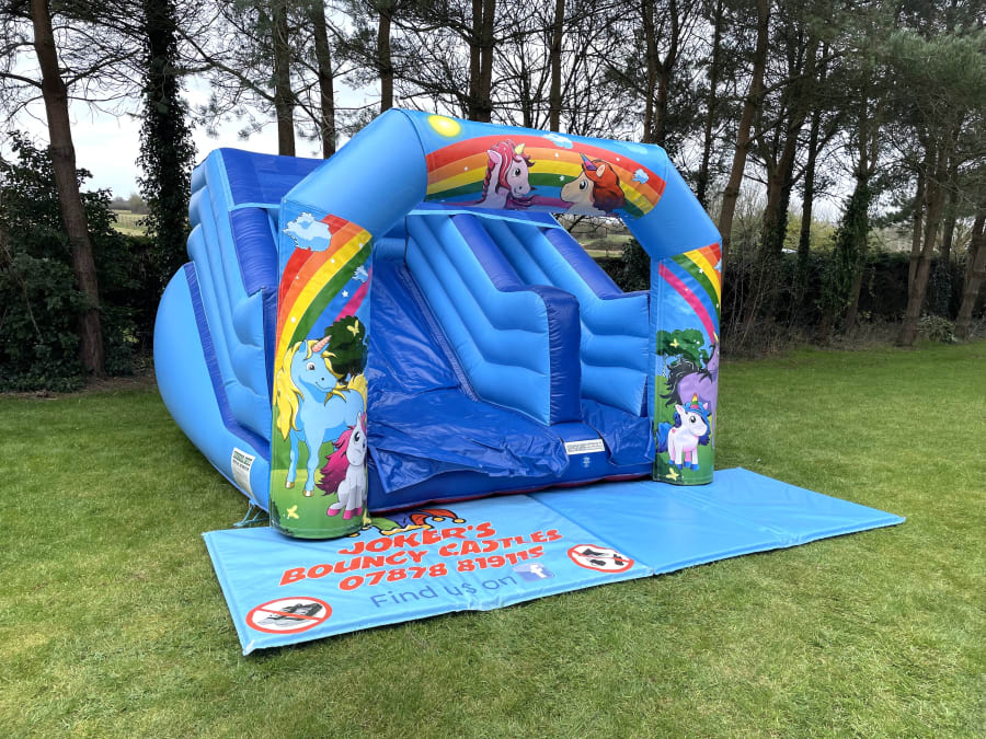Delight your kids with our fantastic 5ft Platform Slide! Perfect on its own or if you have the space why not add a castle to create a fantastic party package!! Suitable for children up to 1.3 metres in height. The 'Unicorns' theme is bound to be a smash..