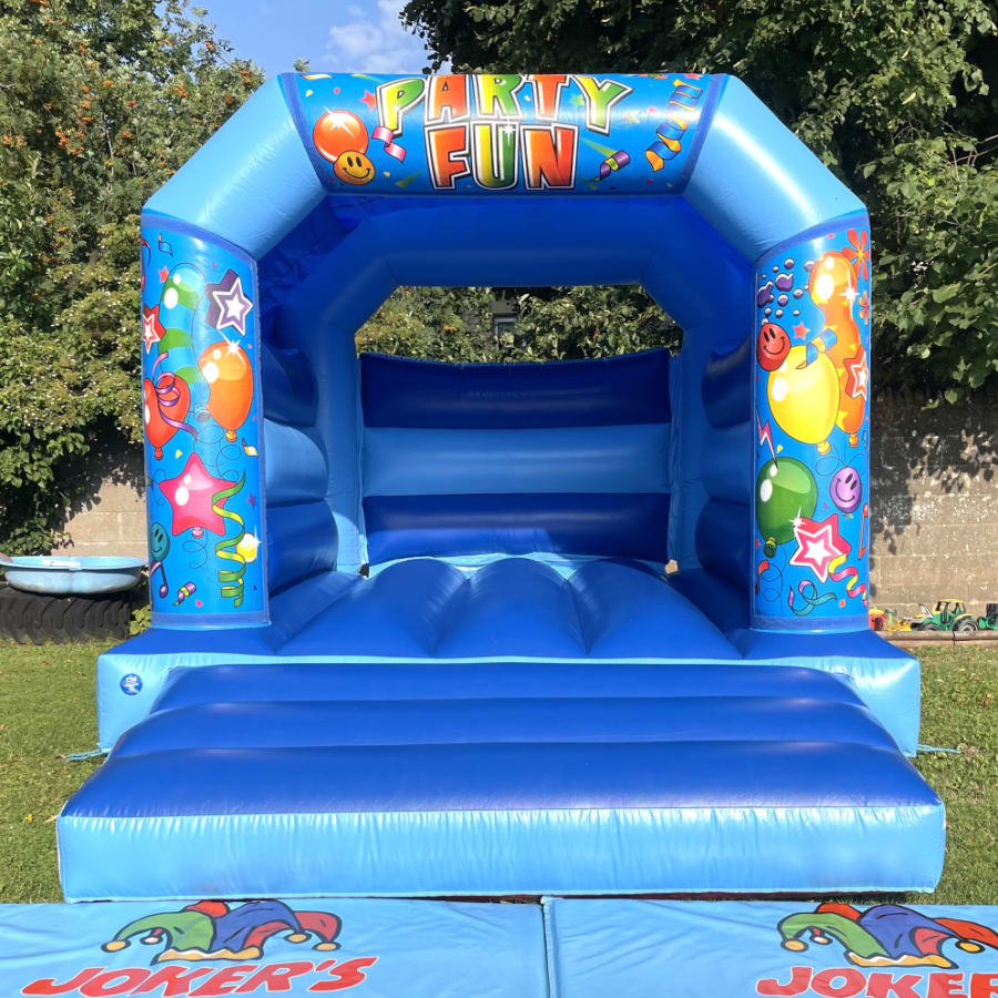 Our 'Party Fun' themed Bouncy Castle is ideal for indoor and out door parties! The castle's compact size with a low height ( 9'3") makes it perfect for indoor hall use! The castle features a large bouncing area, and wide entrance -great for supervision. suitable for children up to 1.3 metres in height. The 'Party Fun' theme is bound to be a smash..