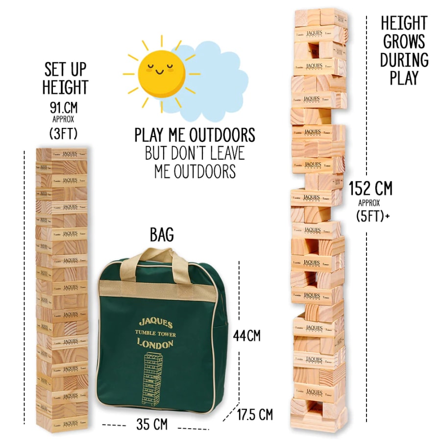 The Giant Tumble Tower is a superb family garden game. The building of a tower over 5ft can be achieved for the ultimate Tumble Tower experience.