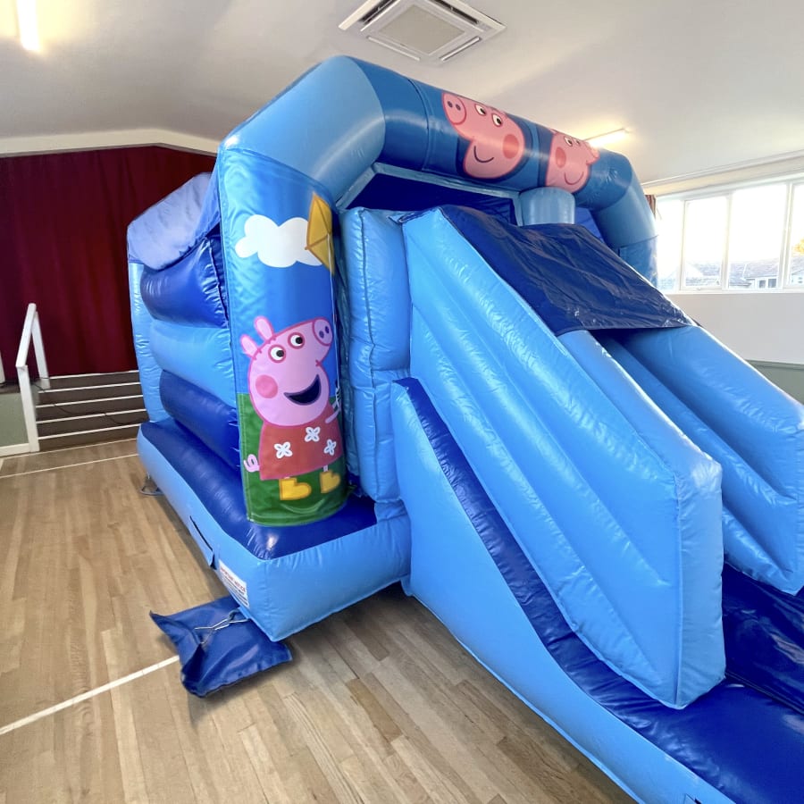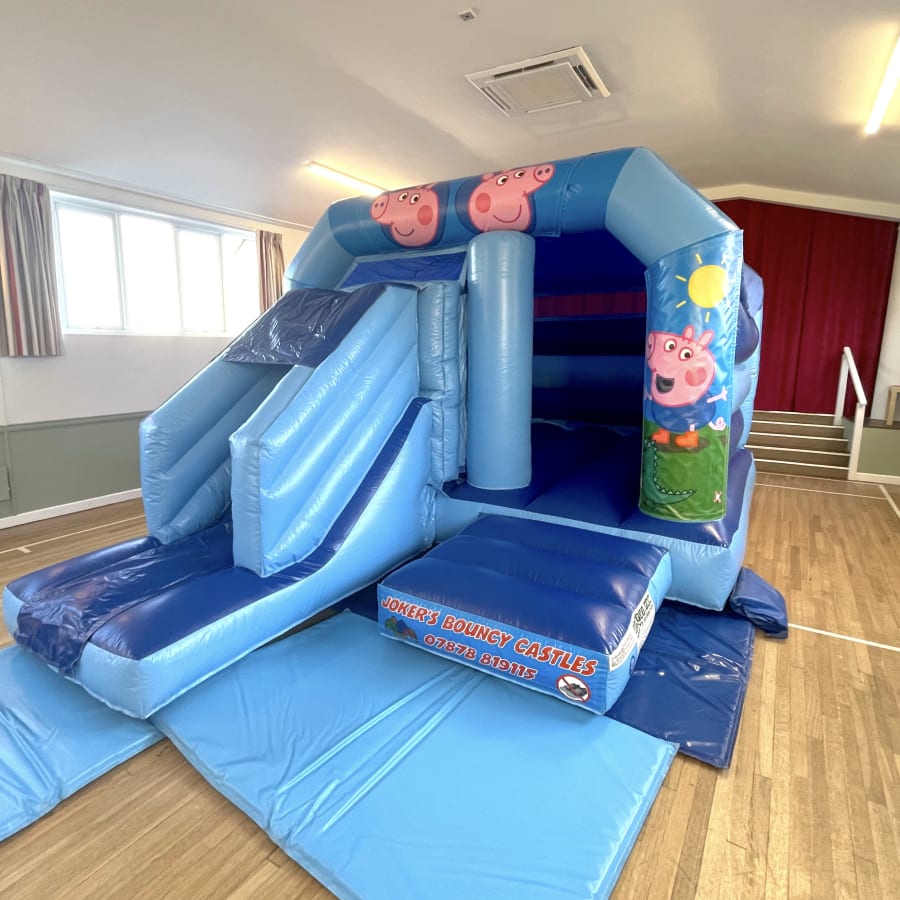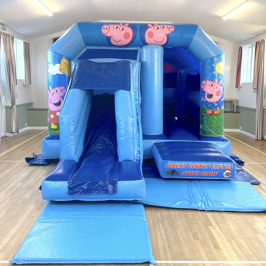Ideal for indoor and out door parties! The castle's compact size with a low height ( 9'3") makes it perfect for indoor hall use! This castle features a large bouncing area and front facing slide with front facing entrance great for supervision. suitable for children up to 1.3 metres in height. The 'Pippa Pig' theme is bound to be a smash..