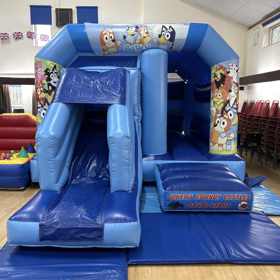 Short on space but want big fun? The Blu-ey Bounce & Slide 12ft x 18ft is the perfect bouncy castle with a front-facing slide. Designed for smaller village halls and gardens. Bright blu-ey artwork grabs attention. Safe, simple, and built for non-stop play. 🛝