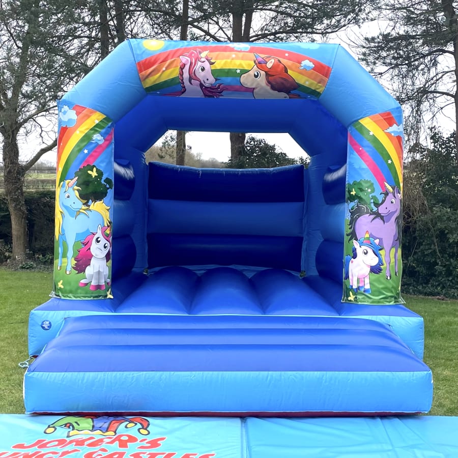 Our 'Unicorns' themed Bouncy Castle is ideal for indoor and out door parties! The castle's compact size with a low height ( 9'3") makes it perfect for indoor hall use! The castle features a large bouncing area, and wide entrance -great for supervision. suitable for children up to 1.3 metres in height. The 'Unicorns' theme is bound to be a smash..