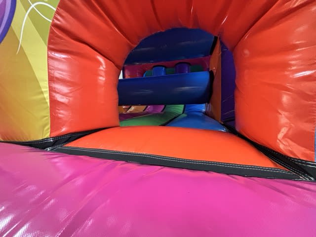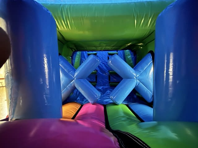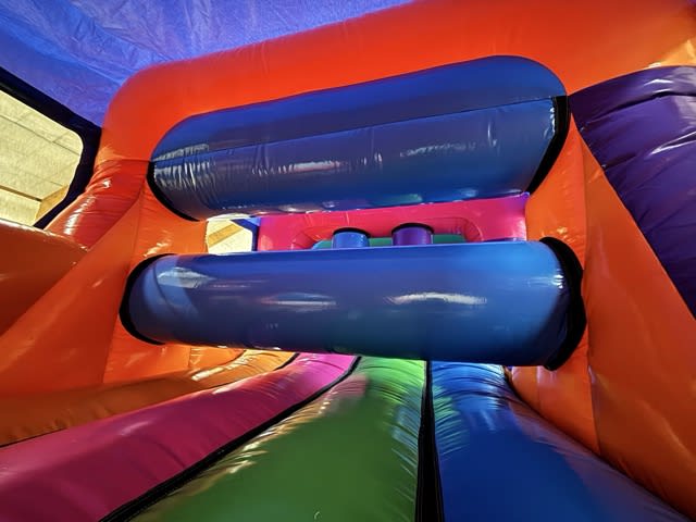 Navigate through “bish bash” pillars, crawl-through tunnels, climbing walls, and inflatable obstacles before finishing with an exciting slide.